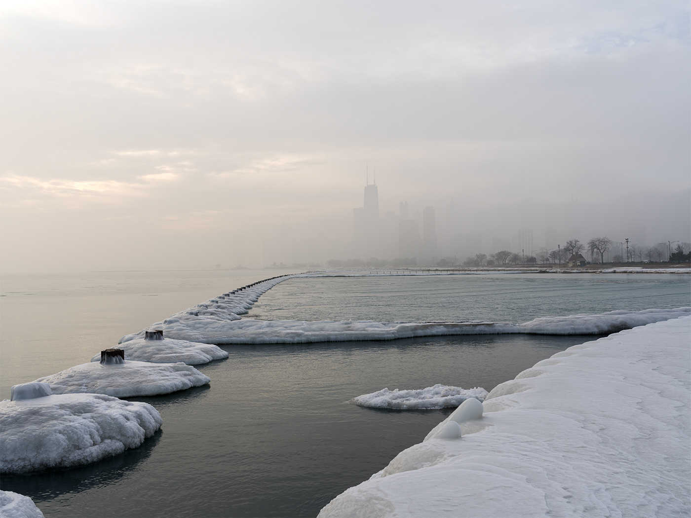 Schatz most often arrives to Lake Michigan at dawn, coming frequently before first light. This is when the lake and the landscape are alone with one another. While most of the city still sleeps, the lake is wild and alive.
