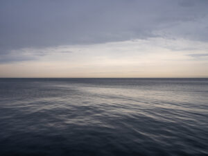 Since 2015, Schatz has carefully studied this landscape. With his back to the city of Chicago, he stands on the lake’s shore and photographs Lake Michigan with a medium-format camera, capturing the waters as they stretch toward the horizon.