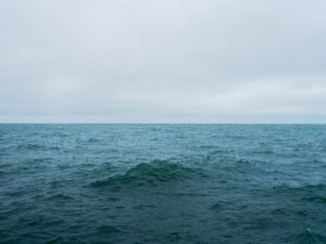 Since 2015, Schatz has carefully studied this landscape. With his back to the city of Chicago, he stands on the lake’s shore and photographs Lake Michigan with a medium-format camera, capturing the waters as they stretch toward the horizon.