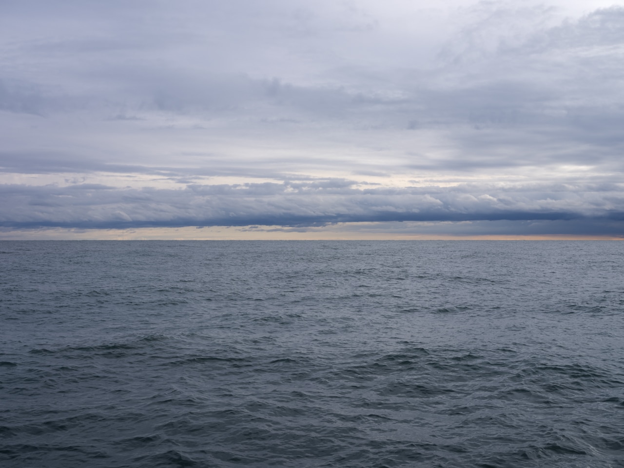 A gentle dawn morning is softly illuminated by the sun warming the horizon line under pastel clouds. From the Lake Series, October 22nd, 2021.