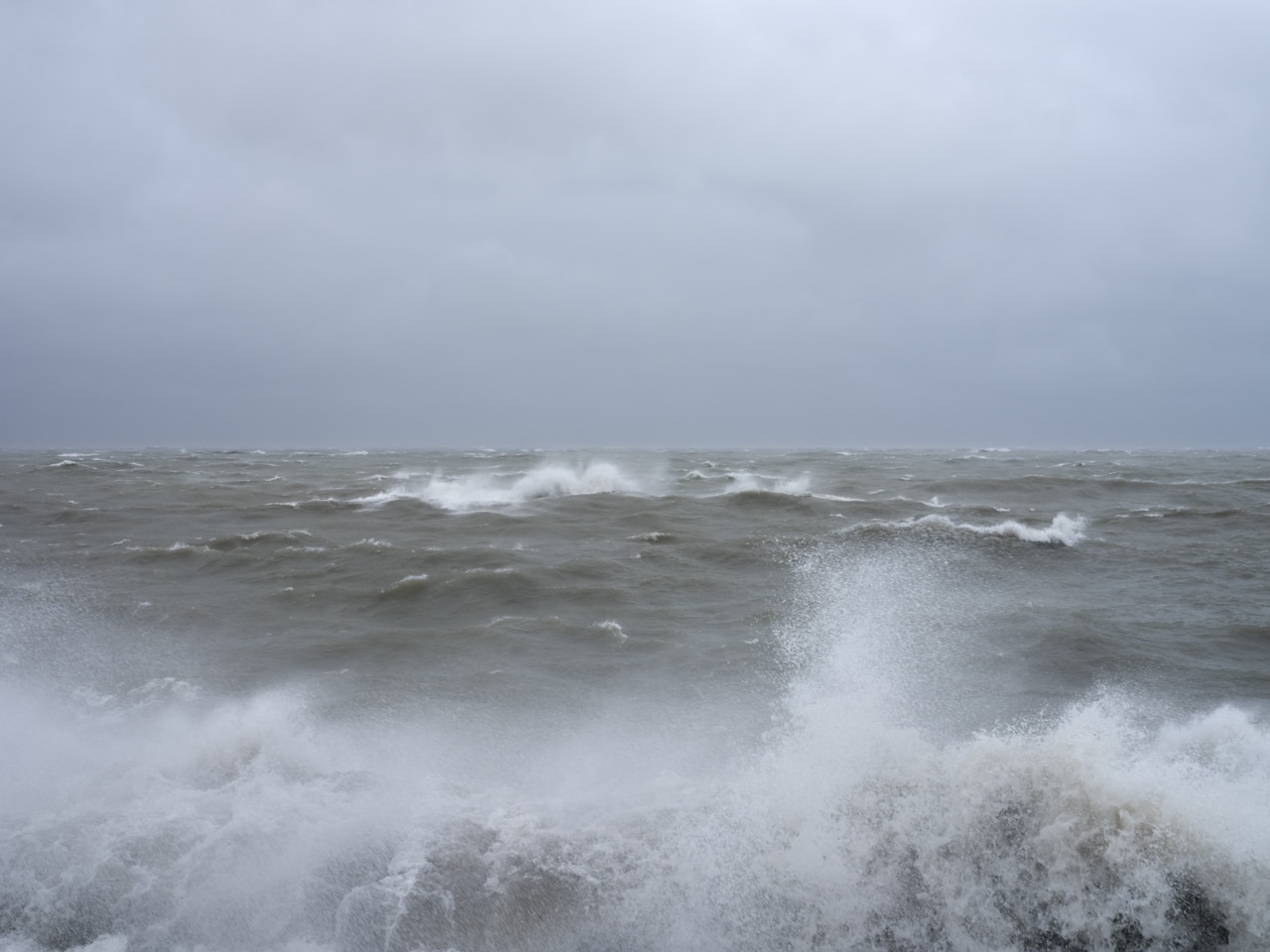 Lake waves crashing crashing against the lake walls on October 25th, 2021 as storms hit Lake Michigan once again.