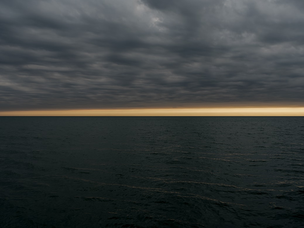 A moody lake morning greets me as I arrive to Lake Michigan. A golden band sits just above the horizon line. The clouds illuminated from behind by the rising sun.