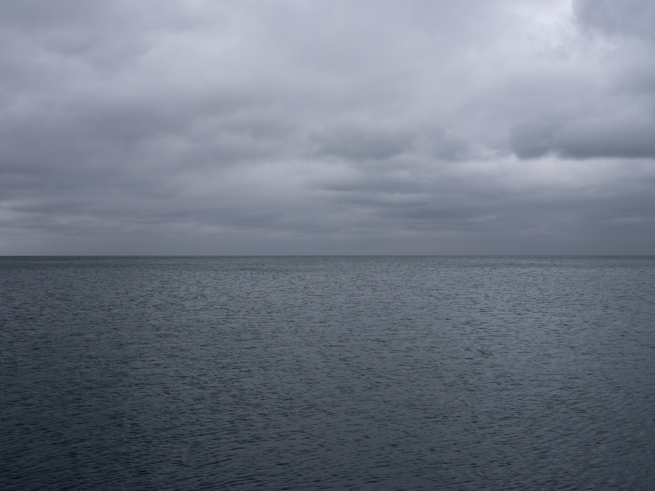A dark slate gray lake day on the lake and the sun is entirely obscured in the sky. Hiding behind heavy clouds. The lake lightly textured by the wind, the landscape becoming monochromatic in these low light conditions. See all of the photographs from the last five years of the Lake Series here or follow along as I explore this and other projects on my instagram account.