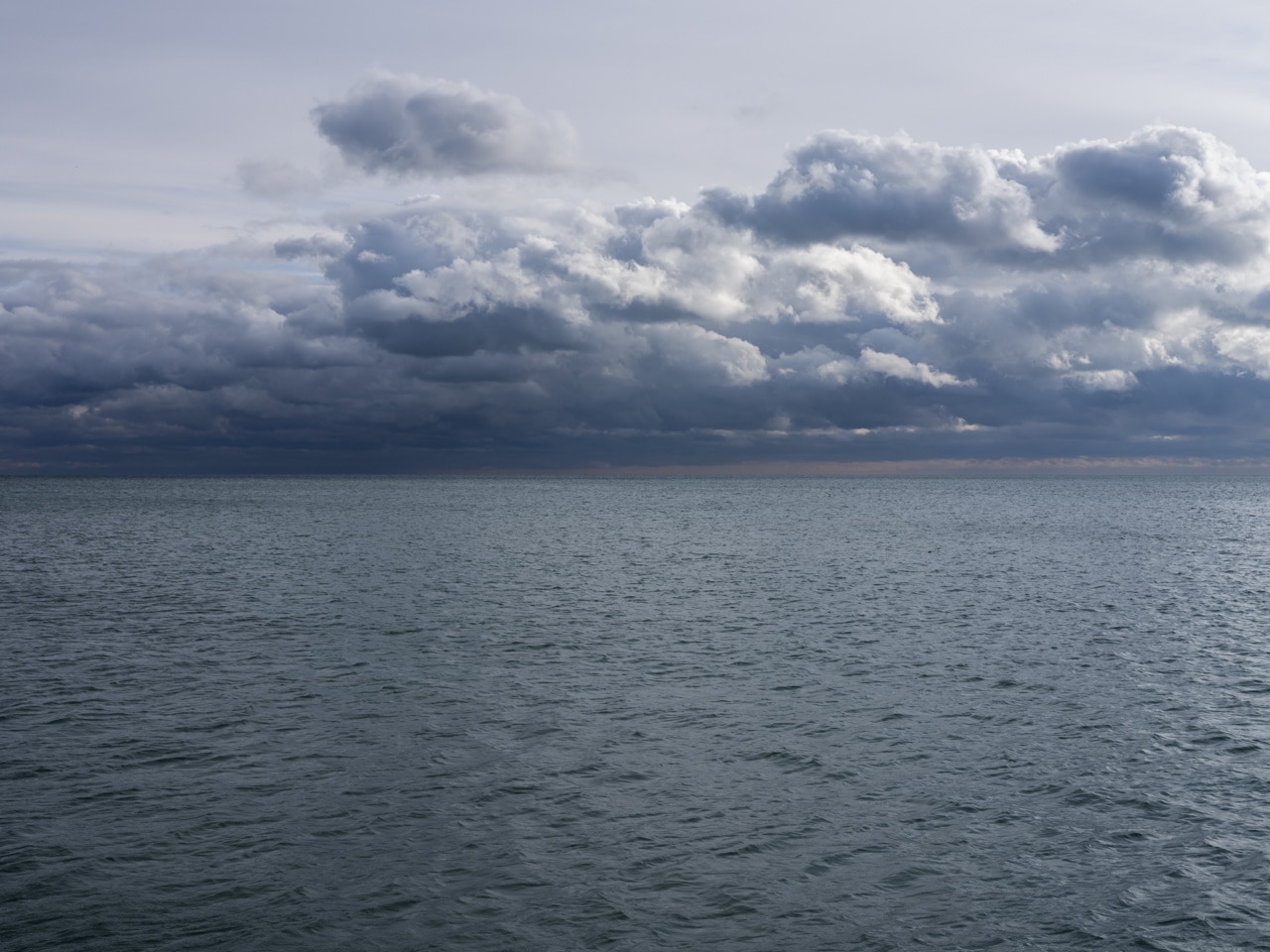 A storm has appears on the lake in this November photo from the Lake Series. Clouds pile up in the sky over the lake. Threatening rains to the north, soon the entire sky will turn dark as the sun disappears entirely from sight.